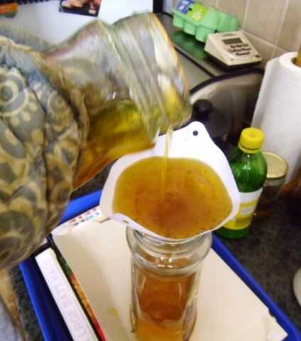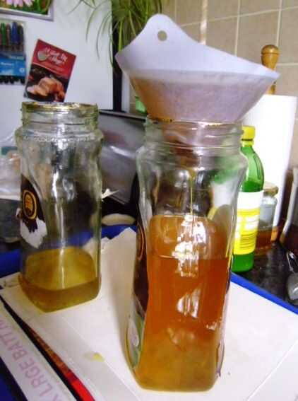 Utilizar la jarra de café de la estufa en un método de cazo al baño María para derretir la cera en el aceite de linaza y luego lo filtra mientras todo estaba todavía caliente. Los filtros que utiliza son filtros muy baratos para el filtrado de pinturas por pulverización, pero como todo en este mundo nuestro; Si usted compra barato pagas dos veces (y a menudo más de dos veces). Los filtros he costado 2p y los solventes en las pinturas que utilizo la línea de pegamento en el papel del filtro en la pintura y sin filtrar pintura objeto de dumping en el bote de spray, que requiere el bote para limpiar disuelvan otra vez filtrada... para mis propósitos de pintura ahora he vuelto a la 14p cada pero muy robusta y fiable pintura filtros , dejándome con más de 200 de los 2p cada uno barato para mi home-brewing y otras travesuras de minas que requieren filtración.
