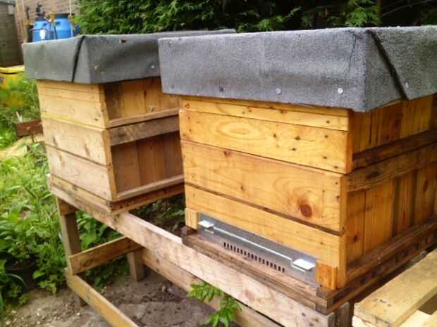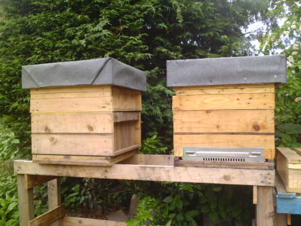 La izquierda es untreated colmena número 19 (poblado) y a la derecha es tratar la colmena número 20 (actualmente vacante). En algún momento durante esta semana a cambio la Colonia encima de 19 a 20, entonces tengo la oportunidad de tratar la número 19 con una capa normal de aceite de linaza y luego una entonces una capa de la mezcla de linaza y cera de abejas... Esperemos que antes de otro enjambre esté disponible.