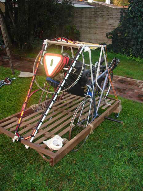 La idea básica era crear un trike reclinado, con un lugar de carga y forma de hogar cama, además de tener la posibilidad de movilidad de la luz con una bicicleta NORMAL desmontable. Me parece muy útil lo de dejar un marco normal para separar así que usted puede mover a cualquier lugar más fácil sin la carga.