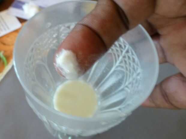 • Mezclar una cucharada de miel (o azúcar) y de la bebida