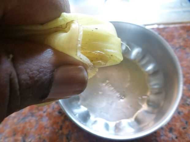 Para el dolor de oído, recoger una corteza cruda en el tallo de un árbol de plátano y calentar sobre la llama. Exprimir el jugo y añadir algunas gotas en el oído. Encontrará alivio de dolor de oído.