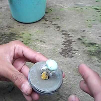 • Llenar la tapa de la bombilla led con cemento e introducir el juguete