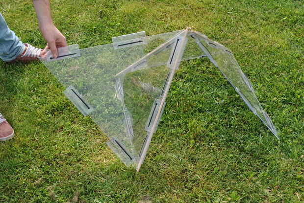 Ahora todas las piezas están listas para que puedas empezar a construir su invernadero. Dependiendo de cuántos triángulos tiene, usted puede hacer muchas construcciones diferentes.