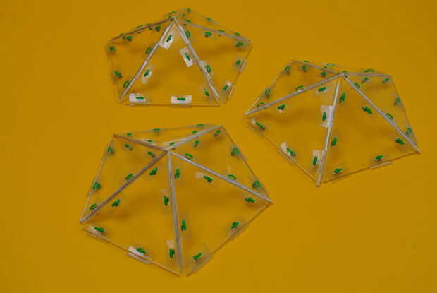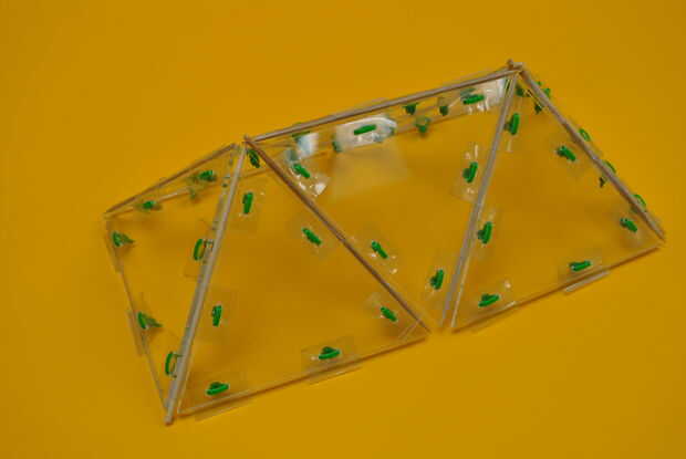Si haces suficientes triángulos, es posible hacer un montón de formas. Puede ser tan creativo como desee, pero para ayudarle en el camino, hicimos algunos modelos a escala, que muestra la versión doblada y desdoblada.