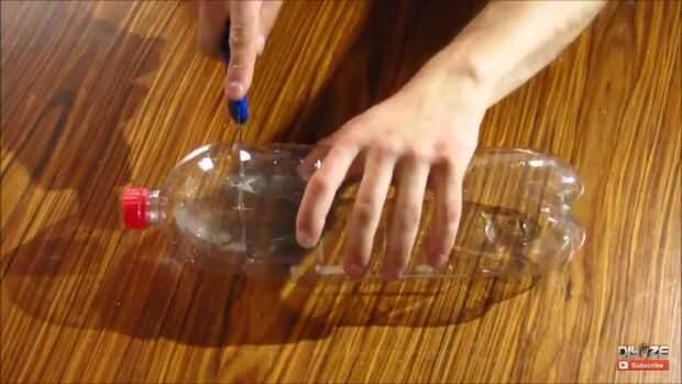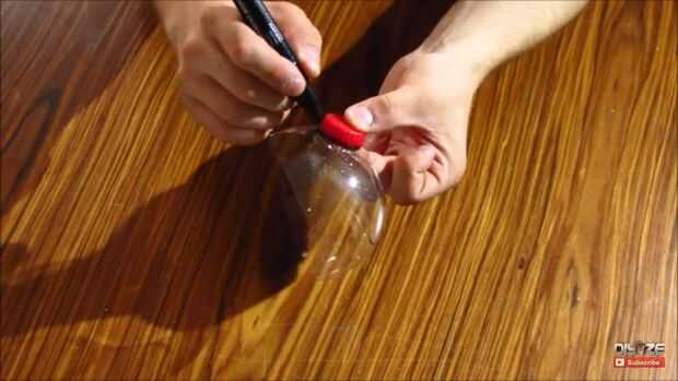 Lo primero que haces, cortar todas las partes de la botella de plástico que no necesita. Todo lo que necesitas para esto es la parte superior de la botella al lado de su cuello. Tome un tapón y utilizarlo para dibujar círculos como se muestra en fotos y recortar 4 círculos con las tijeras. Es importante usar el plástico doblado al lado del cuello ya que está perfectamente formado para lentes.