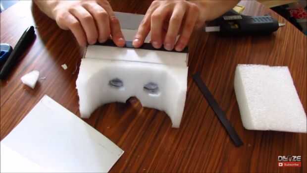 Derecha casi allí, ahora la caja debe tener una tapa que se va a mantener su teléfono en su lugar, si no entonces solo hacer uno y péguela a la caja de. ahora para bloquear la tapa para que sostenga el teléfono puede usar Velcro o imanes. He utilizado dos tiras de imanes de una vieja placa de alumno. Ahora encontrar un pedazo de espuma y cortarlo para que quede tu rostro. así que básicamente necesita hacer una máscara que se adapte a usted cara, nariz, frente, agujeros para los ojos. y pegar a los auriculares VR ahora terminado. Abra alguna aplicación de realidad Virtual en su teléfono o 360 video y coloque su teléfono en. Sabes qué hacer a continuación. Disfrute de su experiencia de realidad Virtual