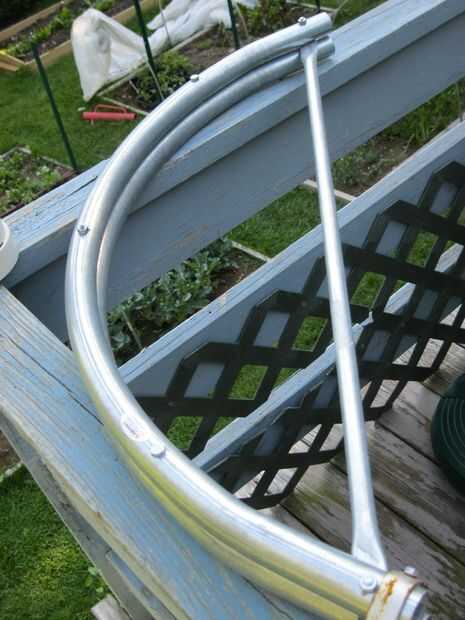 Ahora puede doblar el tubo con la mano, usted puede hacer su propio bender, o se puede comprar uno. Compramos uno de semillas de Johnny. Tratamos de hacer uno, pero los aros salieron bastante inestable y flojo. Esta bender nos dio arcos perfectos. Los arcos no tienen que ser perfecto, pero sin duda lucen mucho más agradables, y si su jardín es visible desde la calle, que los vecinos podría apreciarlo.