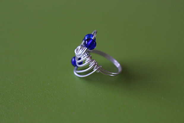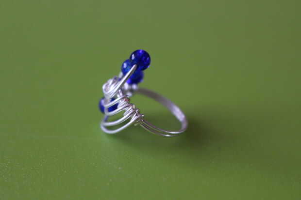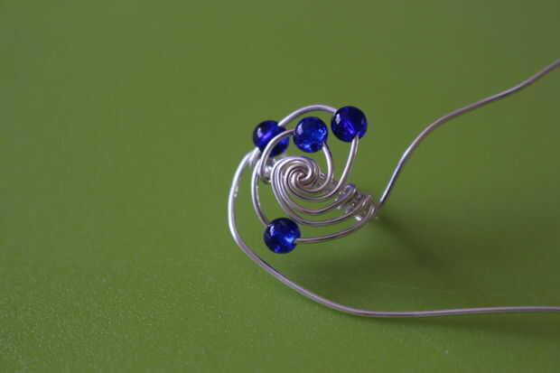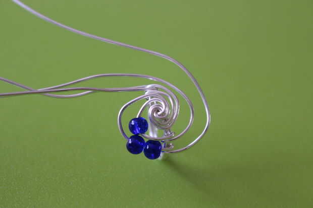 Poner un cuarto cordón del cable interior y envolver el alambre alrededor de la base del anillo. Después de esto, usted puede terminar el cable. Repita lo mismo para el cable del pasado, pero sin añadir un grano.