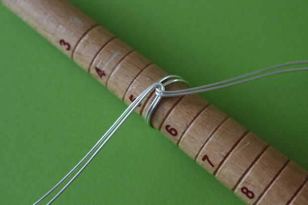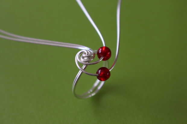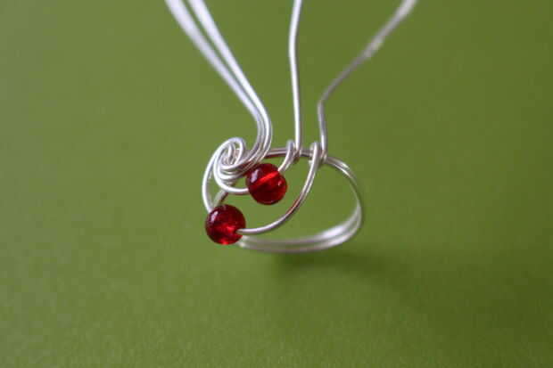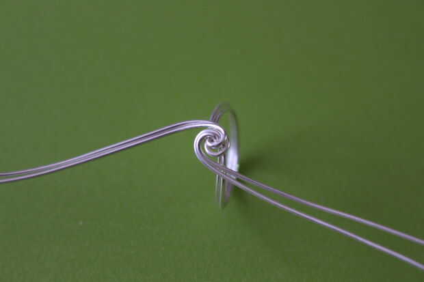 La base de este anillo es el mismo que el anillo de Ravenclaw. Una vez realizada la base, agregar una gota a los alambres internos y externos en uno de los lados. Hacer una envoltura alrededor del anillo base con ambos cables.