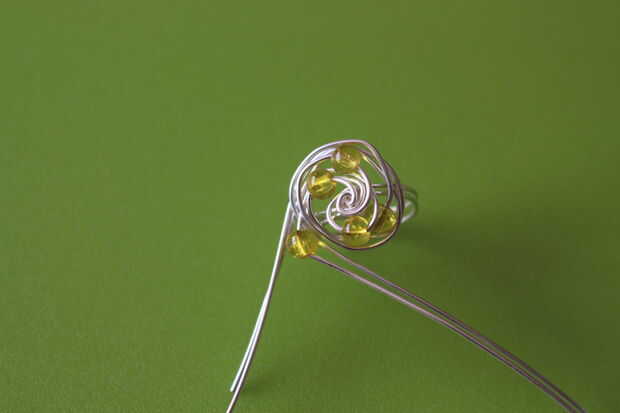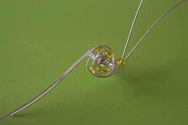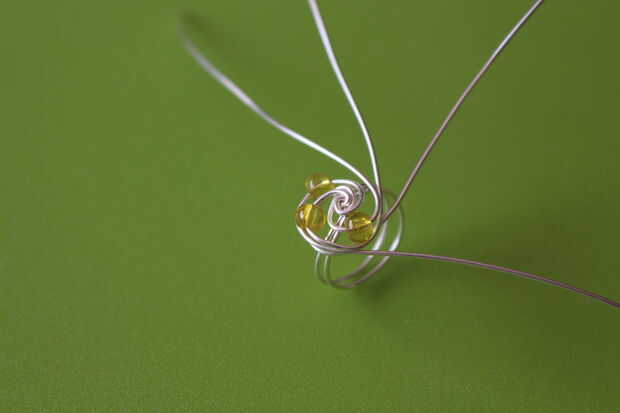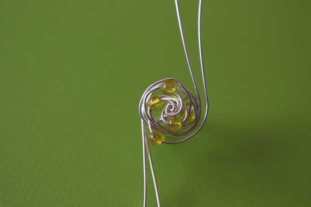 Para lograr la apariencia aleatoria del bosquejo, es importante continuar añadiendo cuentas y torcer los cables alrededor de la otra. Importante cuando se hace esto está tratando de equilibrar las cuentas hacia fuera un poco. Recomiendo en algún lugar con perlas alrededor de 5.