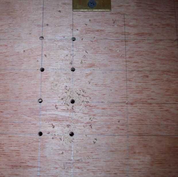 Encontrar una rejilla de trazado con un lápiz, luego usando unos de diverso tamaño taladro pedacitos obras bien, (algunas formas de agujero animarán diferentes bugs, agujeros como éstas son el orificio estándar y alentará a más errores que quiera, pero si quisiera construir una casa más inclinada a mariquitas, delgadas ranuras horizontales funcionará mejor y para ranuras verticales de la mariposa (no que beneficioso en una asignación!) cerca de 4 pulgadas con una pulgada de varilla de dow sobresale como una percha en la parte inferior de cada uno es su mejor apuesta.