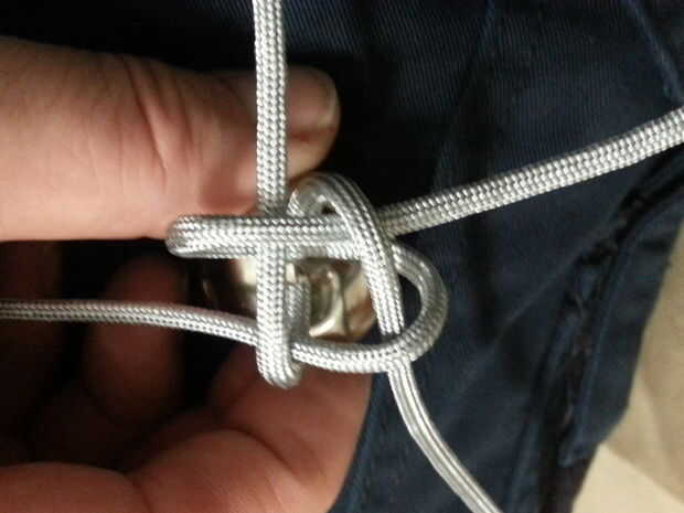 I used to see this as a soldier. Es una modificación fácil usando paracord. 1. medir una pieza de paracord tan larga como la cadena de la bola.2. Tire hacia fuera seis filamentos interiores dejando uno en el manto.3. Haga un nudo en un extremo de la