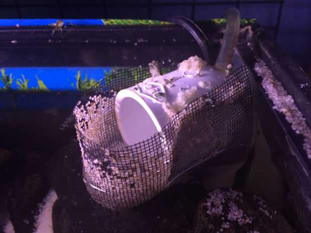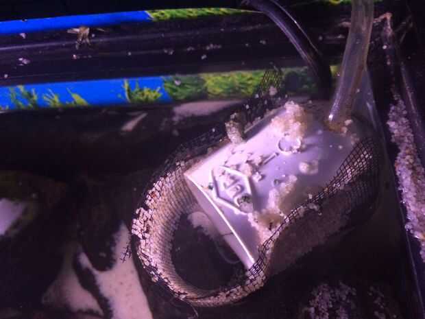 ACTUALIZACIÓN: La corriente puede causar arena para tirar de la tubería y extendido a lo largo de su tanque. Para solucionar esto, tomó un trozo de malla de fibra de vidrio y había pegado alrededor de la abertura de la tubería que hace forma de U frente a la tubería. Esto bloquea la arena muy bien. Usé sólo un poco de silicón de la categoría acuario a ambos lados de la tubería y envuelto en una tira de malla alrededor de él. Lo siento si esto suena confuso, ver los dos últimos cuadros para mejor detalle.