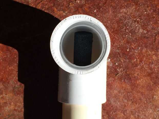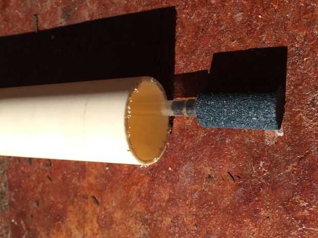 Coloque la piedra de aire en el extremo de la tubería y montar el otro codo sobre este extremo. La piedra del aire debe ser en la parte inferior de la tubería (ver fotos para detalles).