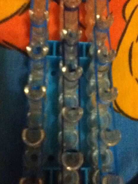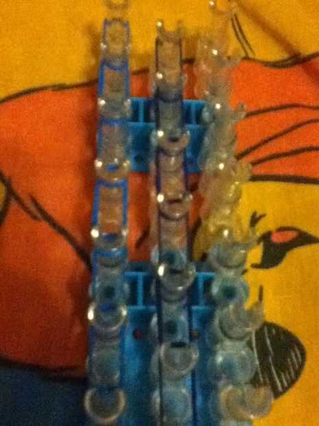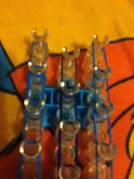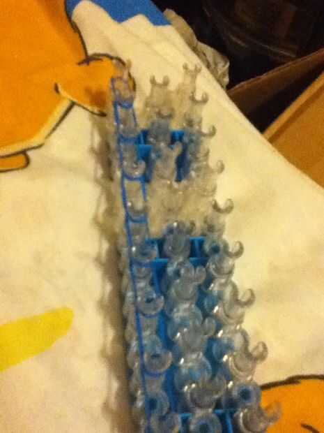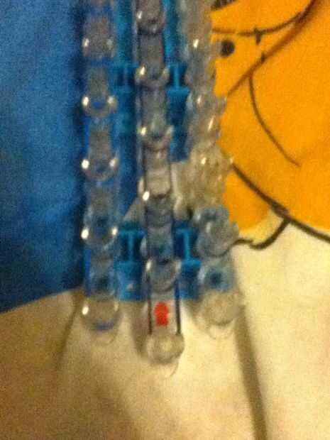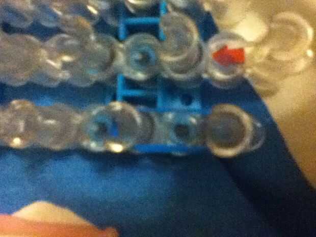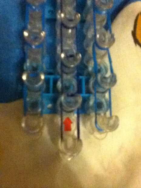 Empezar en la izquierda y coloque sus bandas va para arriba, se trata de uno de los exteriores. Ir al centro y subir el telar, asegúrese de que no tocan el lado izquierdo y las bandas de medianas. Lo mismo para el lado derecho, se trata del otro lado de la pulsera.