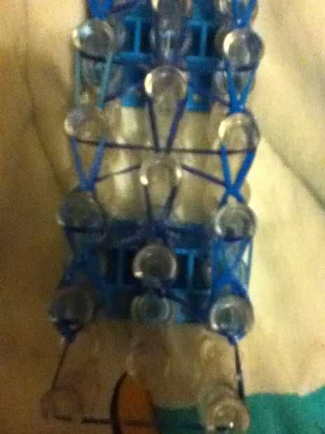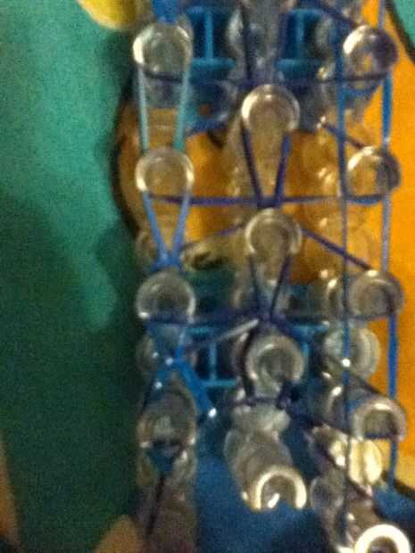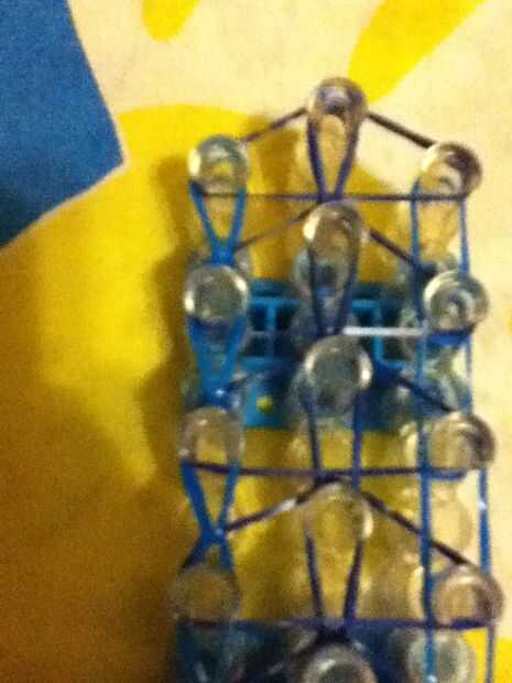 este patrón es muy fácil creo. Básicamente sólo repite sí mismo. Su un poco más gruesa que la pulsera de telar solo arco iris.Usted necesitará• arco iris telar (o cualquier otro telar)• gomas• un gancho• C-clip o pinza S(Quizá quieras tenerlo en una