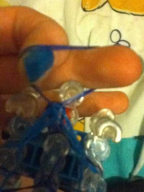 este patrón es muy fácil creo. Básicamente sólo repite sí mismo. Su un poco más gruesa que la pulsera de telar solo arco iris.Usted necesitará• arco iris telar (o cualquier otro telar)• gomas• un gancho• C-clip o pinza S(Quizá quieras tenerlo en una