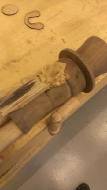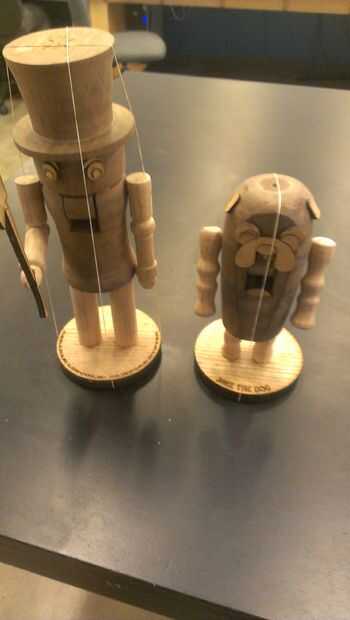 El Cascanueces deben ahora tipode parecen un cascanueces! Todo lo hice después de esto fue pegamento algunas patas en los fondos (mismo tacos de madera como los brazos) y corta un pedestal base en laser de TechShop (grabamos a si como lo hice).