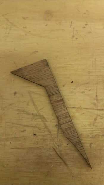 Introduzca el cortador del laser! Con finas hojas de madera contrachapada, corté una manija que siguieron los contornos del cuerpo de Cascanueces y mantiene el ángulo de la parte trasera de la boquilla.
