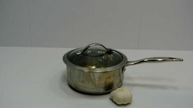Todo lo que necesitas es una olla con una tapa o envase y unos ajos.