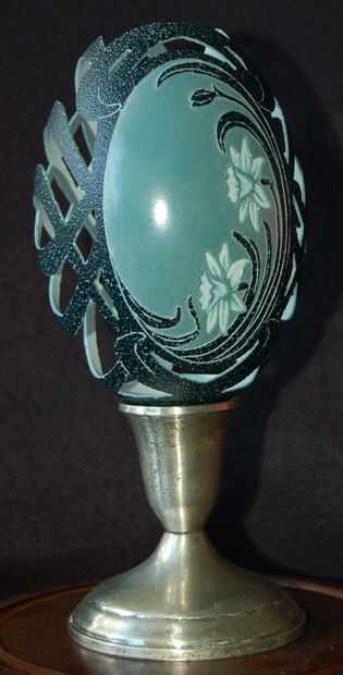 he creado este proyecto con el sorprendente huevos de Faberge en mente. Mi enfoque era combinar la precisión y la belleza de los famosos huevos de Fabergé con posibilidades y herramientas modernas. Utilicé un huevo de emu debido a las capas naturales