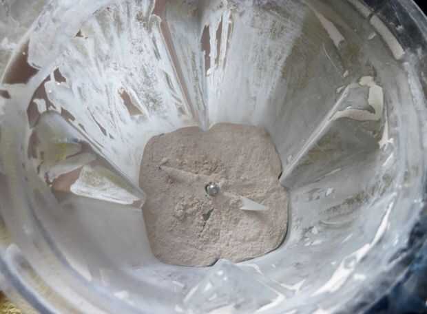 Rutina en ausente, esto toma aproximadamente un minuto en velocidad 10 en mi Vitamix. Usted está buscando para tan fina de polvo como usted puede conseguir. Muchos perros comer un huevo duro, cáscara y todo, pero creo que el polvo es más fácil de mezclar en la comida (¡ y si lo usas a sí mismo, este derecho se mezclan en su batido de proteína o en mi caso, probablemente añadiría lo que un batido de s ' Mores!).