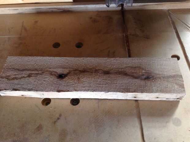 Después de cortar un segmento de limpiar sobre todo 13,5 pulgadas del larguero para actuar como el cuerpo de la lámpara y limpieza de la pieza, me corte una delgada tapa para ocultar la electrónica futura de uno de los listones superiores de la plataforma y limpiar así.