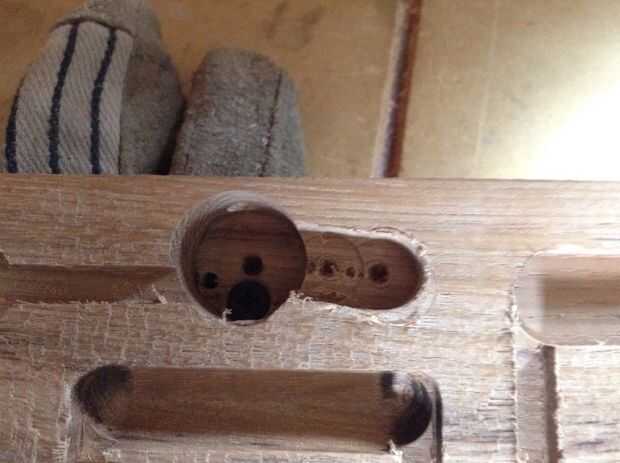 Con el interior sobre todo terminado, forrado hasta la placa a cómo se montaría y piloto perforan empotrado y tornillos topó con la madera para asegurarla. Con estos puntos de montaje terminados, quité la tapa.