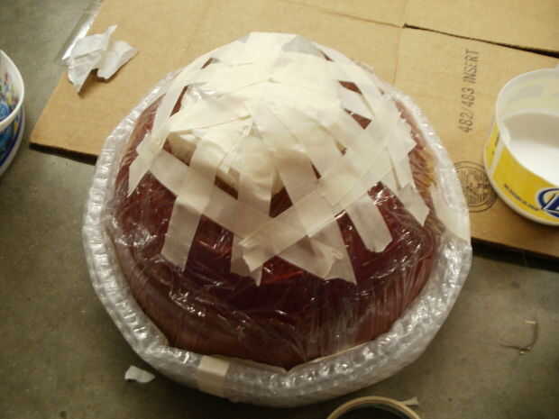me importaba para la parte superior de mi taza y quise ponerla.  Para hacer esto, hacer un disco o cono de papel o plástico de burbuja.  Utilice cinta de enmascarar para mantener Unidas y para unir a la parte superior del tazón de fuente.