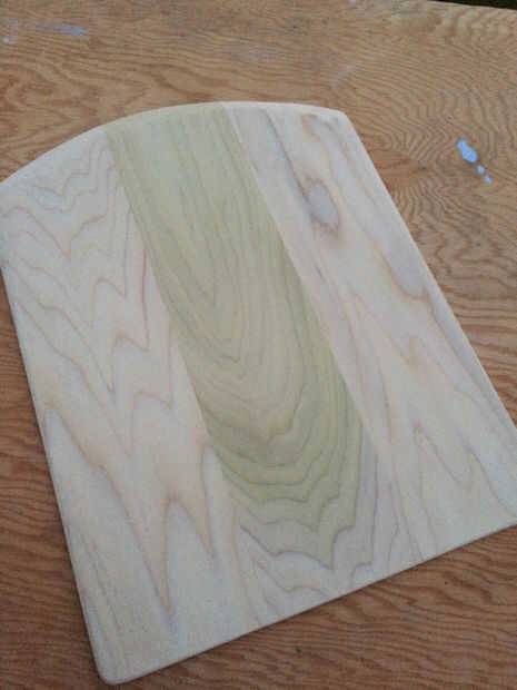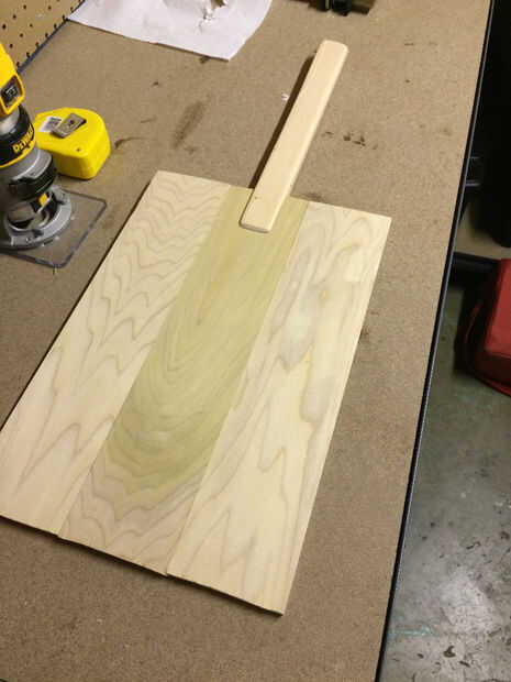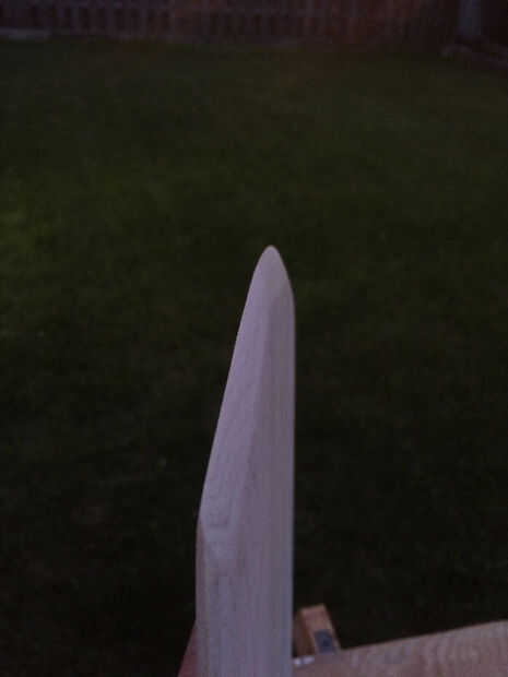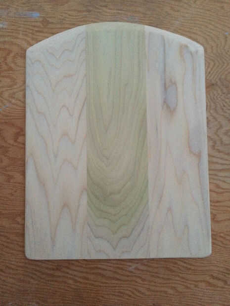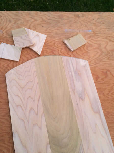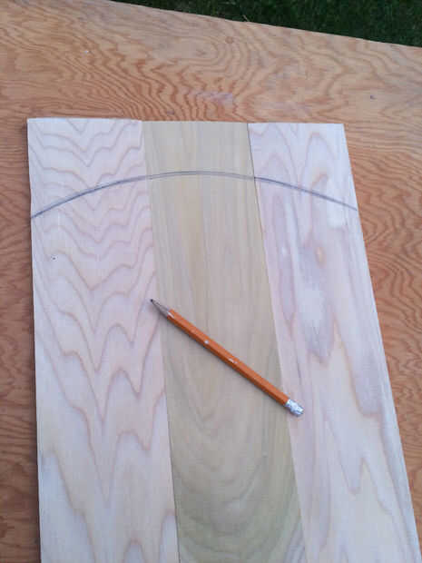 Ahora que el pegamento se haya secado, dibujar una línea curva en un extremo de las piezas encoladas de madera. Usando una sierra de habilidad cortar la línea de mejor forma puede no se preocupe su no perfecta será arena suave después.