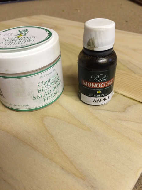 Primero aplique el acabado al aceite, usé un acabado de aceite de nuez de grado alimento que es amistoso y no transfiere ningún sabor cuando se usa. La marca exacta que utilicé se llama "Rubio - monocoat; Nogal"