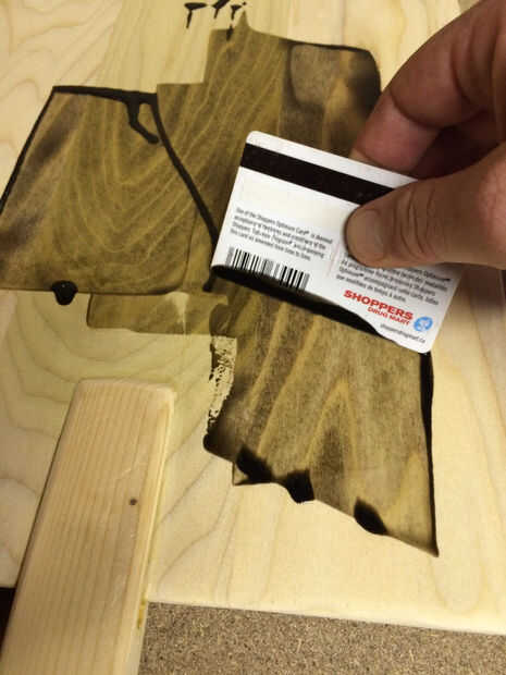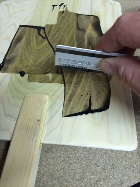 La forma más fácil de aplicar este acabado es mediante una tarjeta antigua. Vierta el aceite sobre la superficie de la piel y arrastrar la tarjeta y el aceite a través de la creación de una capa delgada de aceite en la cáscara.