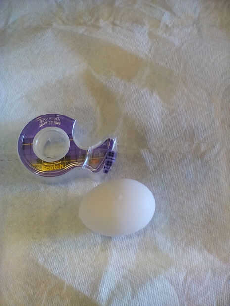 Selle la abertura más pequeña (agujero del tornillo) en el huevo con la cinta scotch. Esto mantendrá tu Jell-o en su lugar. El pegamento caliente opcional funciona mejor que la cinta, pero tarda mucho más tiempo para completar este proyecto ritmo rápido lo contrario.