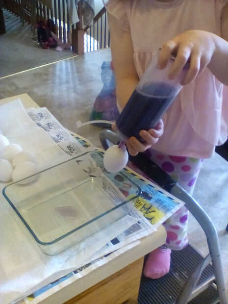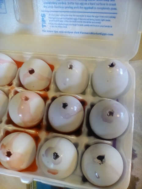 Otra nota: Sabrás rápidamente si están sujetando sus sellos de cinta. Permita que el primer huevo a sentarse un momento para asegurarse de que están grabando bien los orificios inferiores. Se producirán fugas. Mi ayudante de cocina aprendió todo sobre fugas huevos. Si usted decide utilizar el pegamento caliente, usted no tendrá problemas con la salida de este fondo.