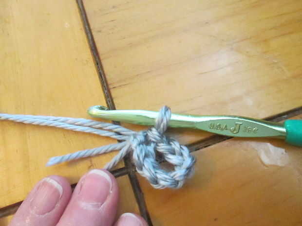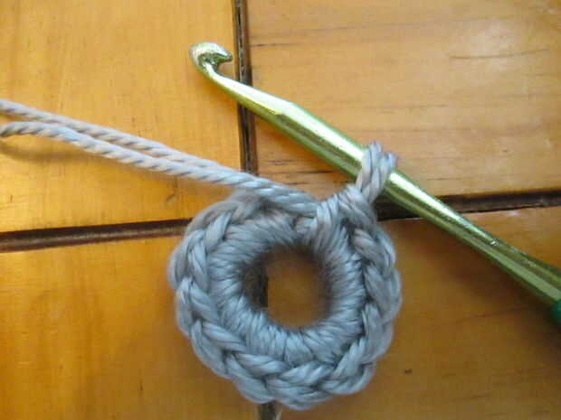 Fila 1 – st sc 12 en el anillo (han creado un agujero de botón para la pantalla)