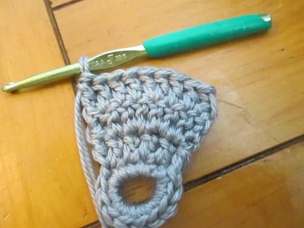 Fila 4, dct, 2dc, 2dc en siguiente st, 4 cc, ch1 trun (9st)