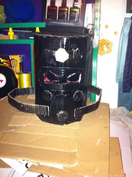 Esto es un 100% hecho en casa LEGO Darth Vader traje, creado con cartón, papel maché y pintura de aerosol. Compré un llavero de LEGO Darth Vader de la tienda LEGO en el centro comercial y utiliza para escalar las medidas y las proporciones. Este traj