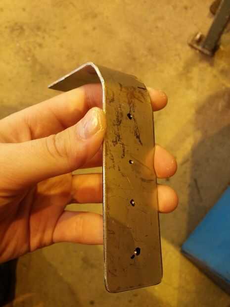 La cosa del lado donde irá la linterna hace de una pieza de metal, el tamaño es de unos 18 x 2, 5cm. Por supuesto estúpido había doblado el metal antes de taladrar los agujeros... para perforar y doblar la maldita cosa. No medir el espacio entre los agujeros. Sólo los orificios perforados y mantuvo la distancia sobre la misma.