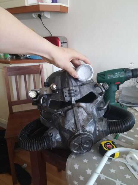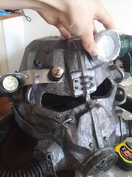 Ahora en este punto comencé a hacer la linterna superior, abit tarde sé que sé. Ahora cuando usted ha hecho la lámpara de su tiempo a la resina y masilla. Después de que haga un agujero en la lámpara y el casco lo encaja la linterna. Tenga en cuenta que la linterna debe ser pequeña para que no se frote contra tu cabeza (si eres bueno con la electrónica, que usted probablemente puede hacer algo mejor). Me olvidé de tomar fotos cuando la luz lo siento pero creo que ya sabes el Resumen de la misma.