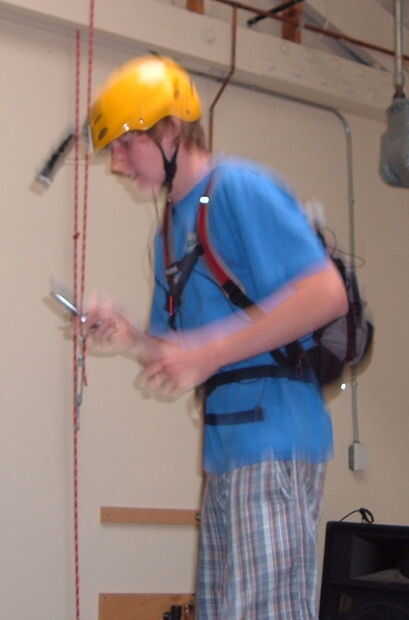 La otra imagen en este paso es Erich saltando en el trampolín, leyendo un mensaje de texto y tomar imágenes de vídeo de la prueba todo. Uno podría ser capaz de hacer esto con una videocámara regular, pero probablemente no tan impresionantemente!