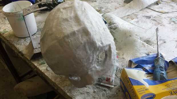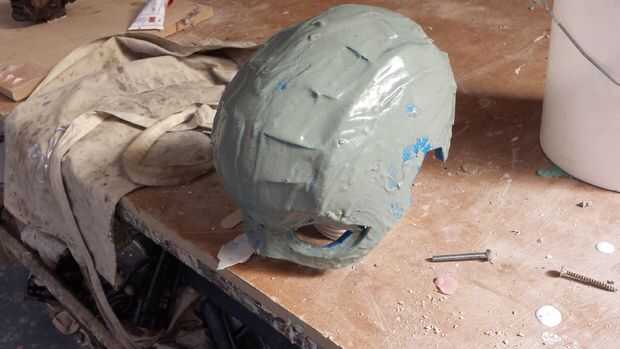 después de que la forma de espuma se armó, se aplicó un grueso después de la resina, seguida por una capa de tejido de fibra de vidrio para reforzar la forma