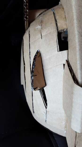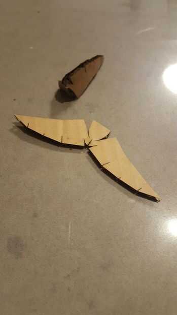 La mariposa dos forma piezas (imagen 3) el greeblies izquierda y derecha (imágenes 4 -5). Son ligeramente diferentes, así que encajen antes de pegarlas y asegúrese de que tienes en el lado correcto. Debe seguir la curva de pendiente hacia abajo de los lados del casco.