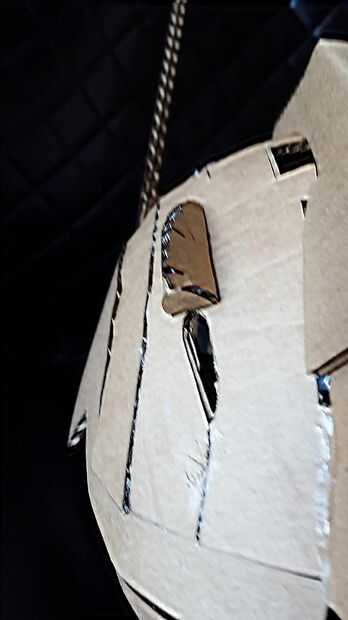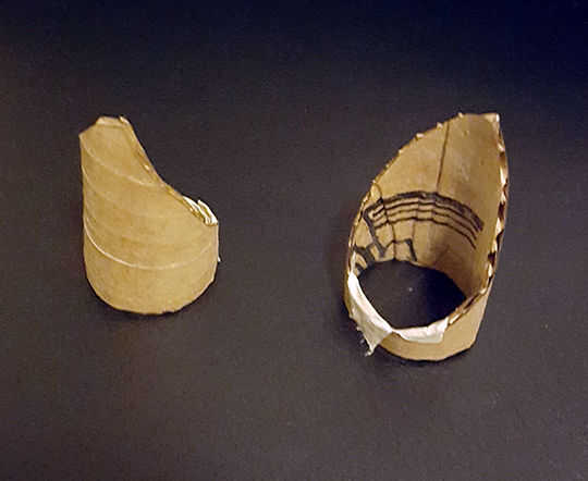 Enrollamiento de la pieza de la "curva" en forma (imagen 1) alrededor de un cilindro (un mango de palo o escoba de béisbol sería perfecto aquí) y conecte el extremo pequeño juntos. Como se puede ver, reforzado esta costura con cinta de enmascarar una conexión tan pequeño y esta área será relativamente fuera de la vista en el casco final.