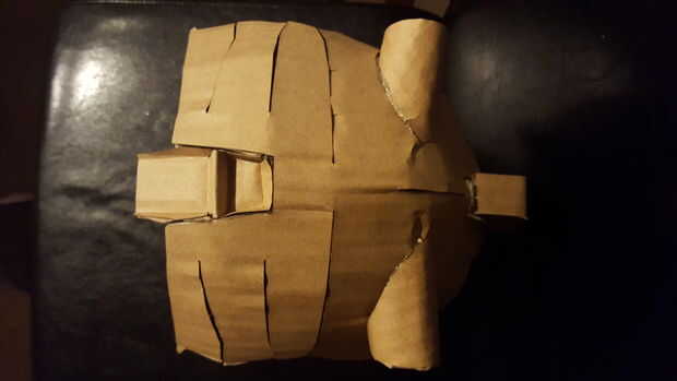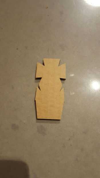 Por último tenemos otra pieza de inserción por el espacio que falta en la parte posterior del casco. (imagen 6) Piezas en forma de una cruz de hierro se dobla en un rectángulo de inserción. Para esta parte, se pretende ser dos plazas empotrada verticalmente apiladas. (imagen 7)