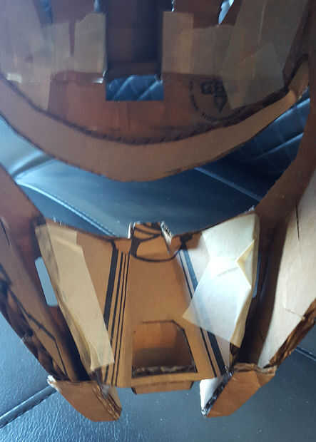 He incluido una foto desde el interior mirando hacia fuera para que pueda ver cómo se unen estas partes. Yo he reforzado las costuras con cinta aquí demasiado.