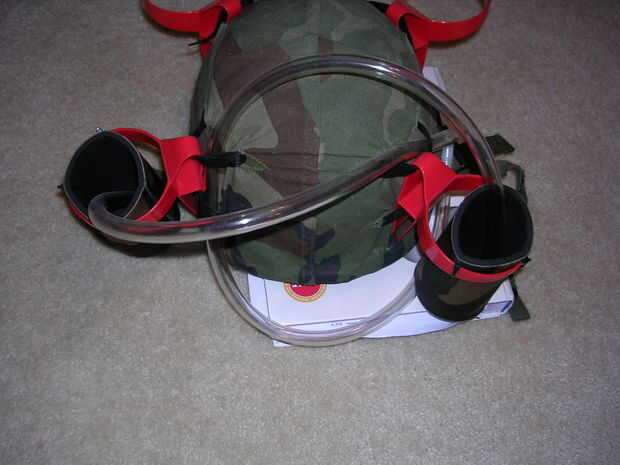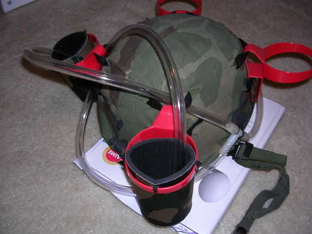Por último, ventilador de la parte posterior de la t común alrededor de la parte posterior del casco y bucle nuevo a la derecha (una vez más esto puede ir en cualquiera coozie derecha trasera o la taza delantera derecha dependiendo en qué modo de beber está en).