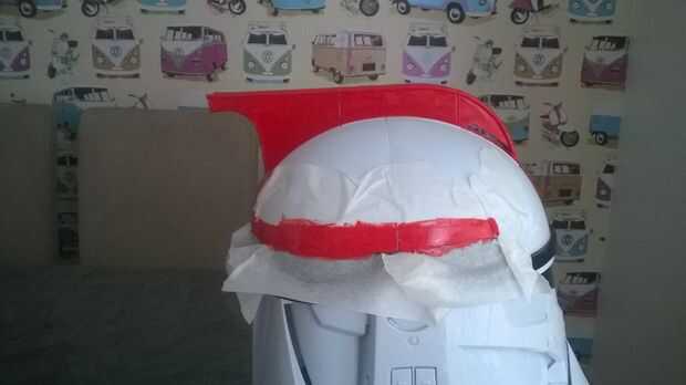 empezar por el enmascaramiento de la headstripe gris y el rojo todo zona 2cm sobre la parte superior de la raya gris de rayas, siga a la altura de 2cm en la parte superior toda de la raya gris y mantener la cinta adhesiva completamente recto a lo largo de esta, que sería utilizar varias piezas cuando va alrededor de la parte posterior.
