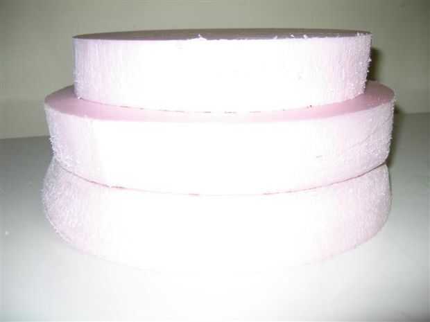 el resto del plástico de la a.  Corte 3 pedazos de aislamiento de espuma de poliestireno de 2 pulgadas el ancho de la dona.