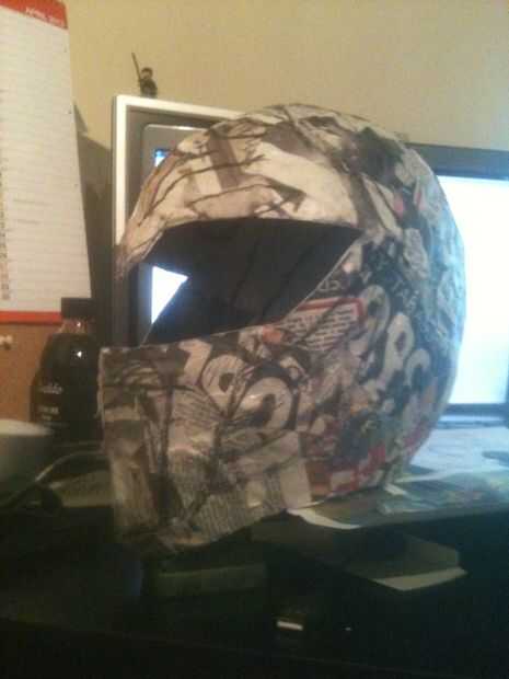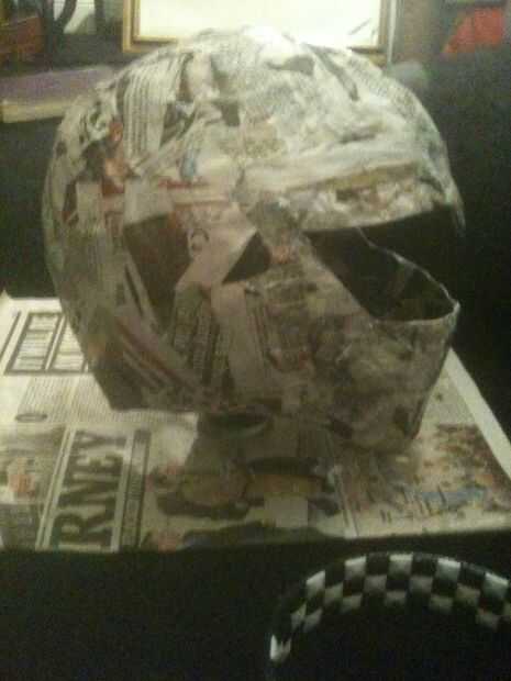 Usted puede comenzar por cortar tiras de tarjeta y cinta en un marco alrededor de su cabeza. y luego rellenar los huecos con papel mache para hacer su forma de máscara muy básico.