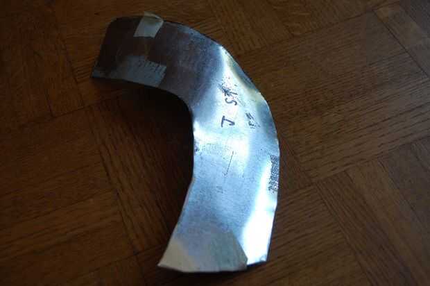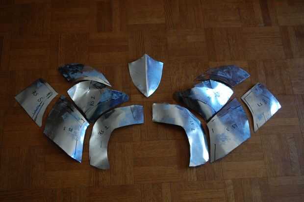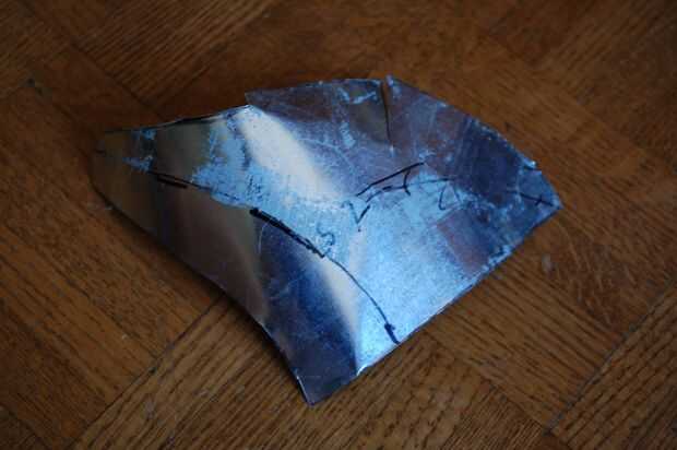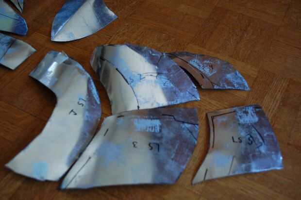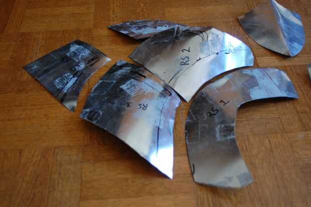 Una vez todo cortado, espera hasta el cuero del casco y doblarlas a mano (o martillo) hasta que encajen. Una vez que terminado con cinta adhesiva junto temporal, para confirmar que se ajustan.